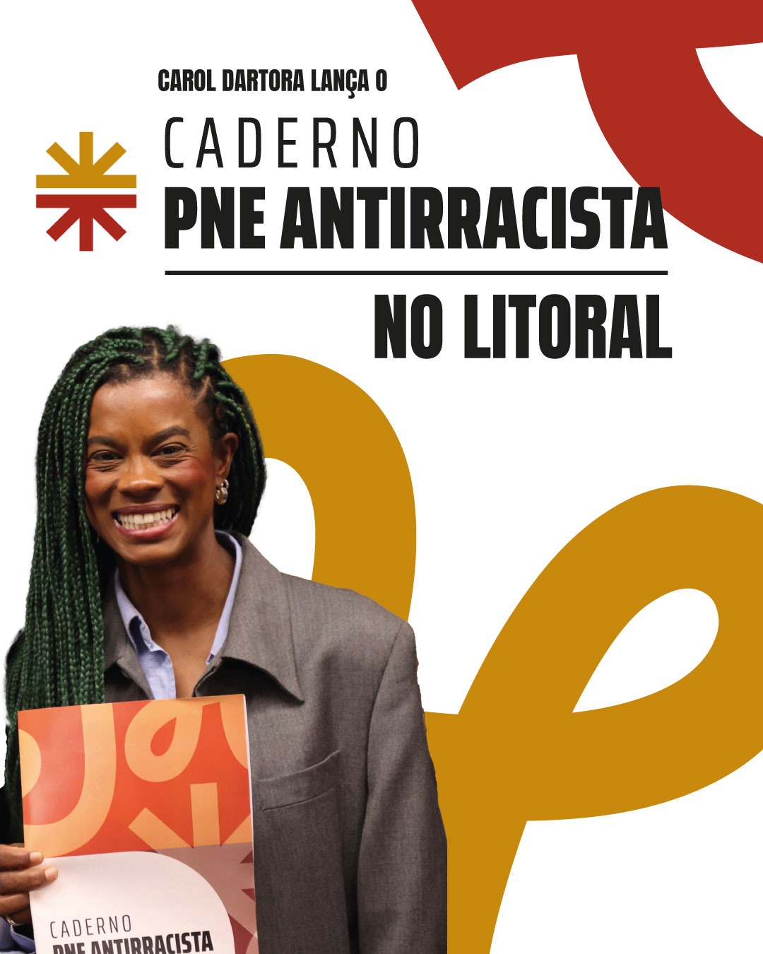 A deputada federal Carol Dartora (PT-PR) lança, nesta sexta-feira (31), o Caderno do Plano Nacional de Educação Antirracista (PNE Antirracista), às 19h, na UNESPAR de Paranaguá, litoral do Paraná.
